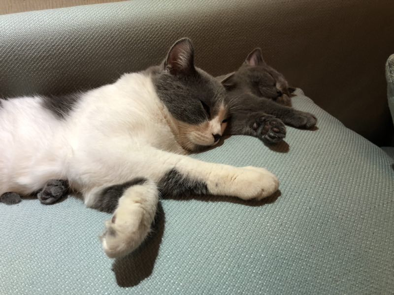 我家猫咪找到了媳妇,看看它俩多么相爱睡觉姿势都是一样的