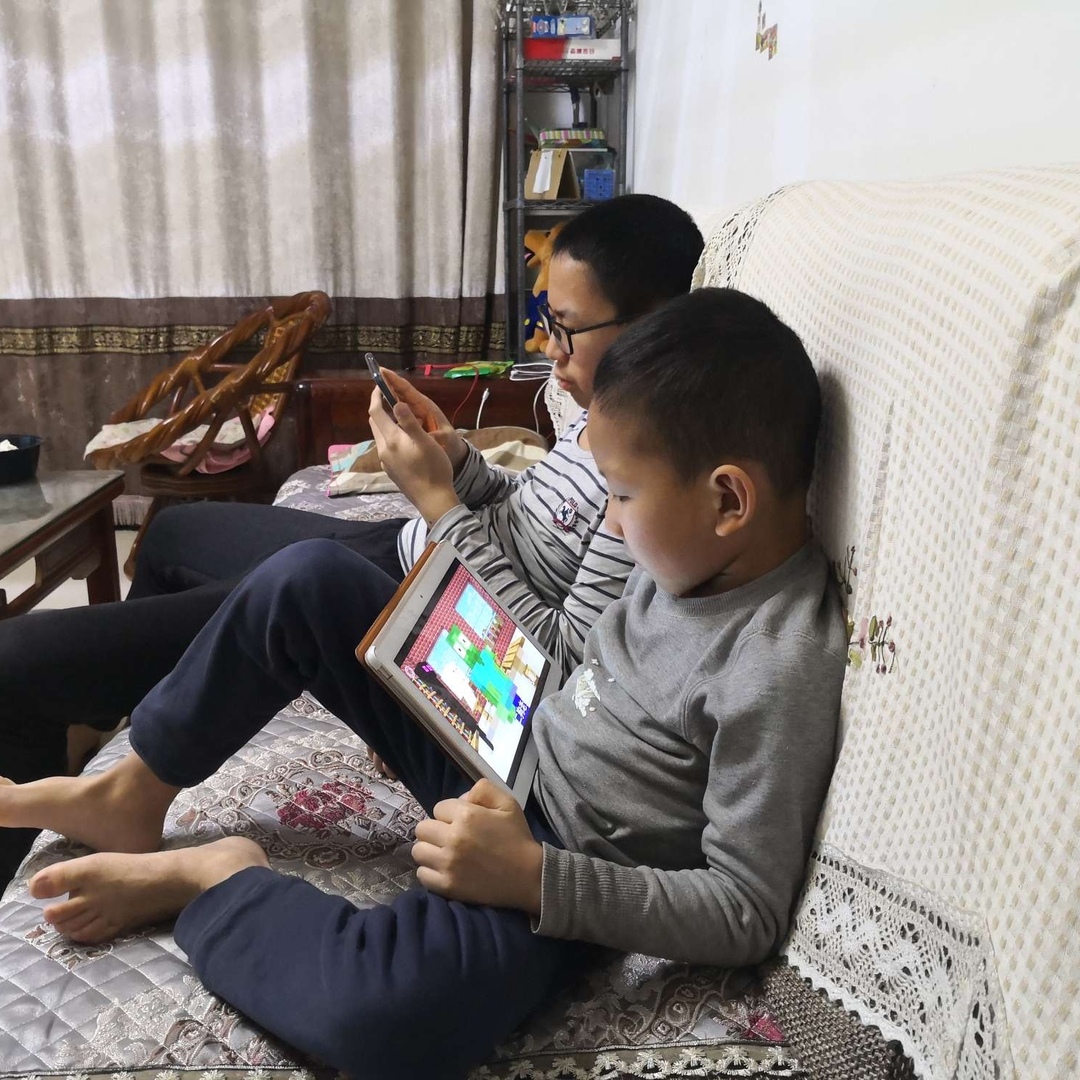 俩娃宅家,玩游戏成了主要任务。 儿子,咱这作业什么时候写?