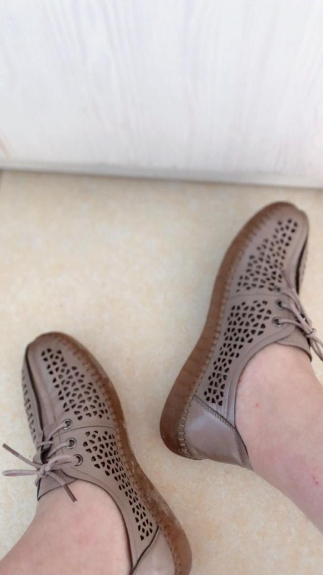 鞋子收到了,试穿了一下,鞋底很舒服皮质很软,而且很透气,现在这个季节穿正好,豆沙色很漂亮!百搭款