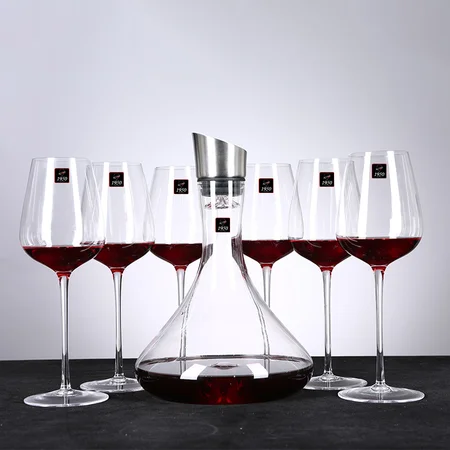 1950手工无铅水晶玻璃家用红酒杯酒具礼盒套装6高脚杯1斜口醒酒器赠酒杯架·透明