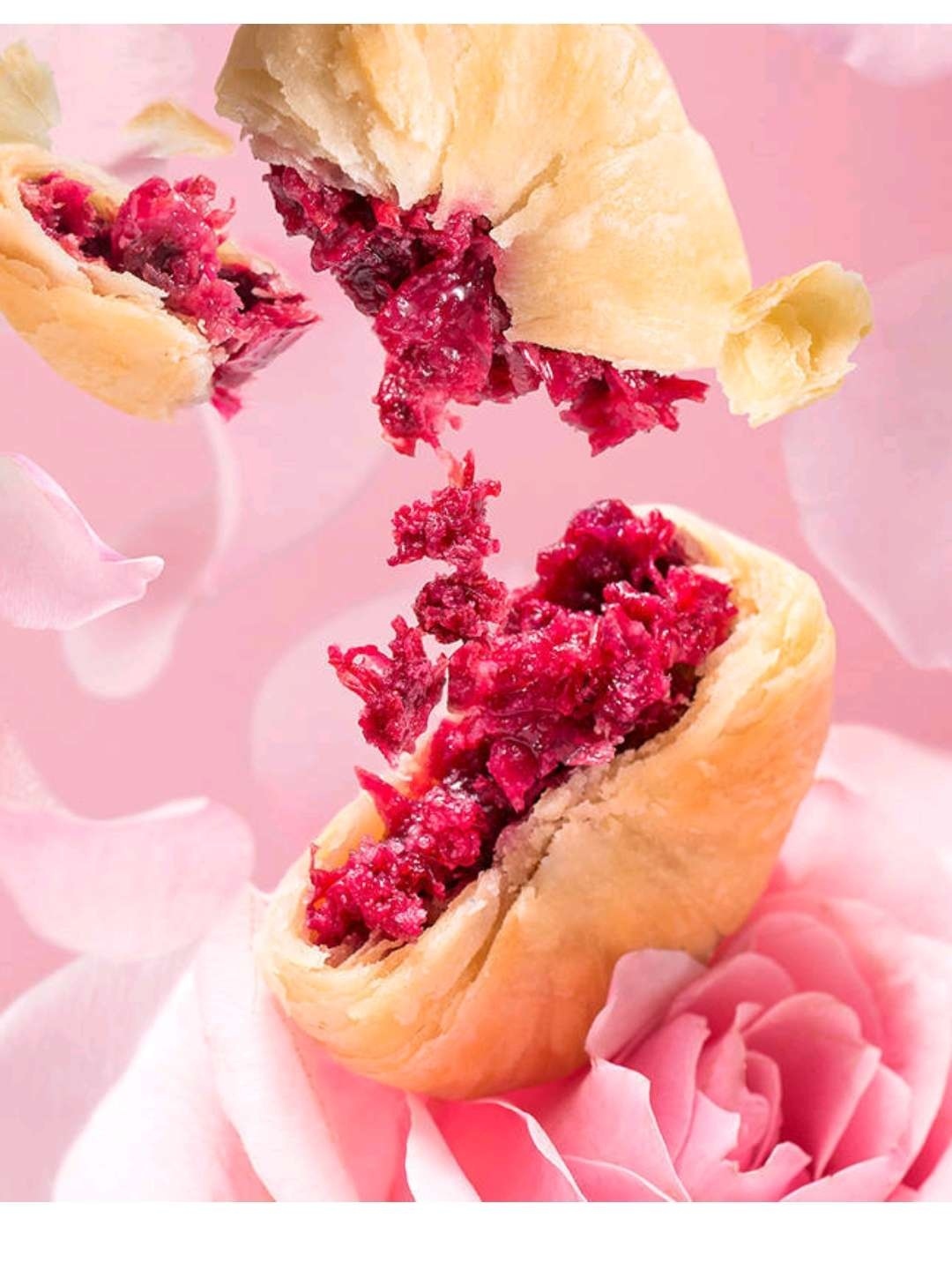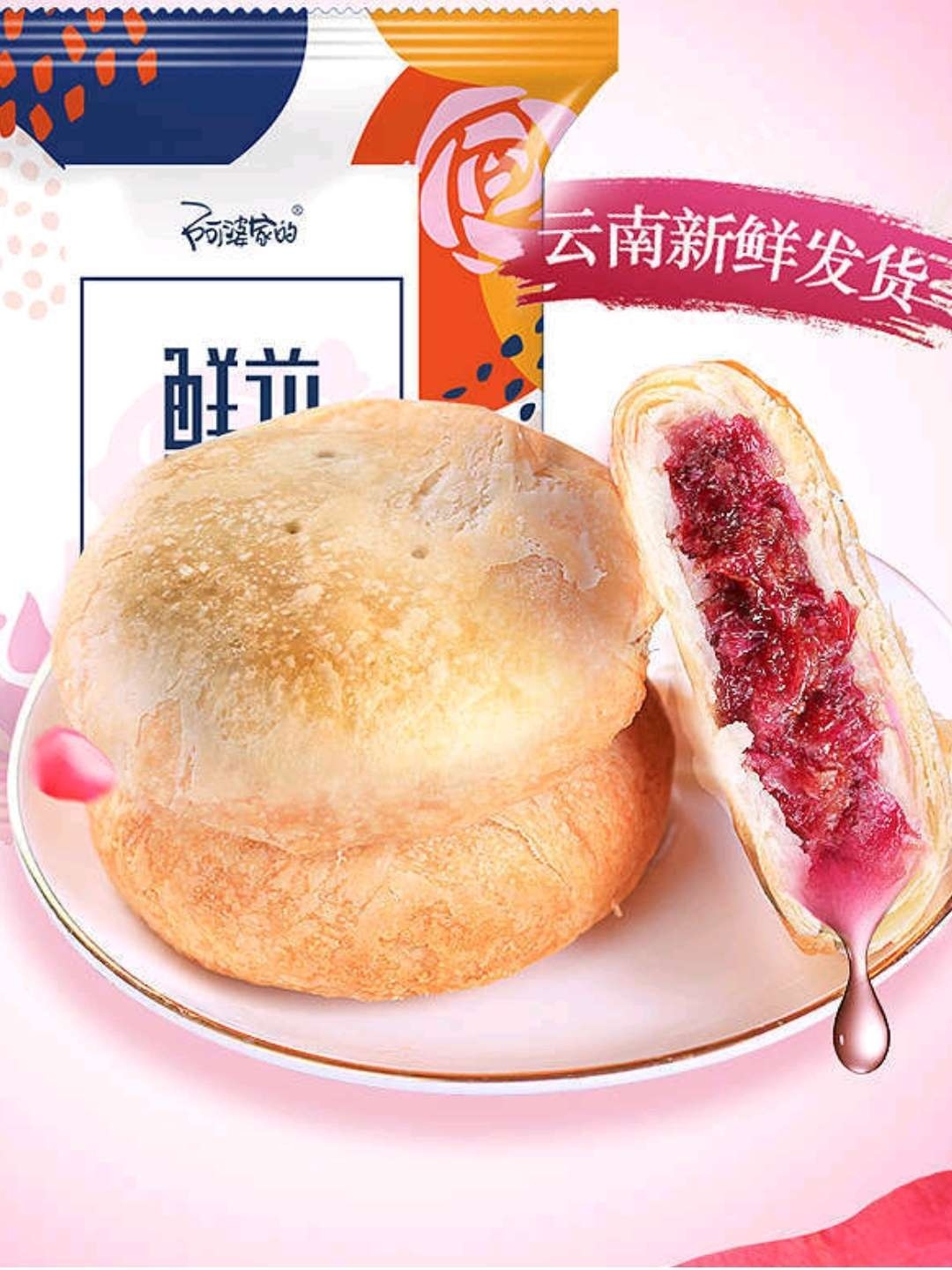 云南玫瑰🌹饼,玫瑰飘香,外皮酥软,细腻香浓的玫瑰花馅,诱人的色彩让人心醉。