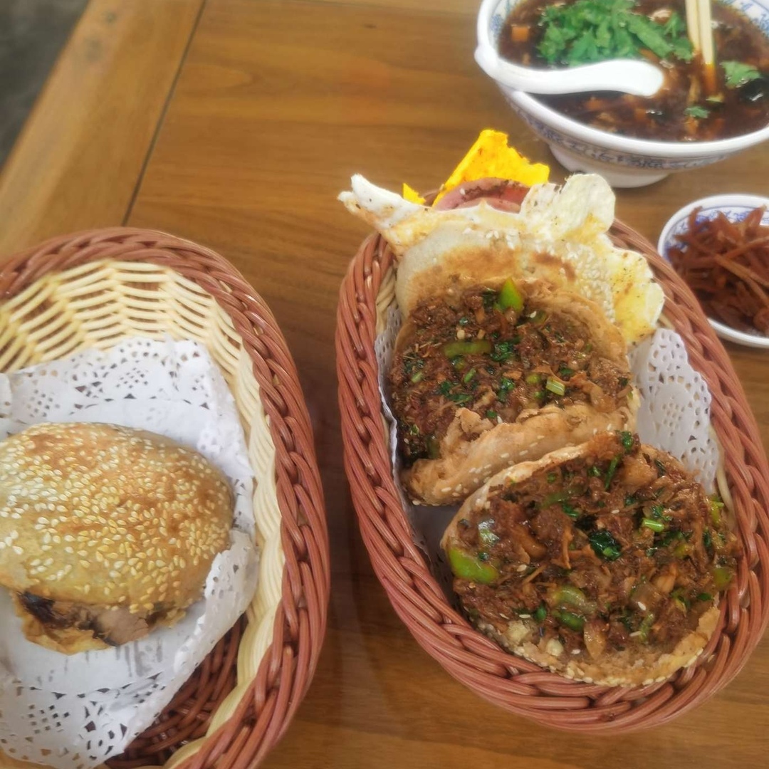 不知你是晒筐还是晒美食呢。我相信你是在晒美食呢。但,是什么呢?不好意思,好像是什么饼。是饼夹着旁边筐里面的东西吃的吧!应该是早点。