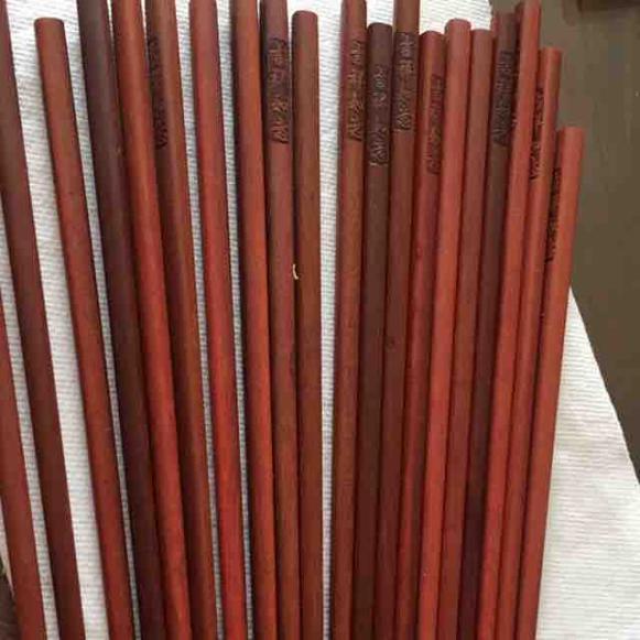 收到货就按照简介用盐水浸泡20分钟,如图一,有些掉色,然后凉干上食用油,然后筷子就变色了如图二,颜色红润,非常好看。许氏红檀木的材质,是大品牌,质量有保证!