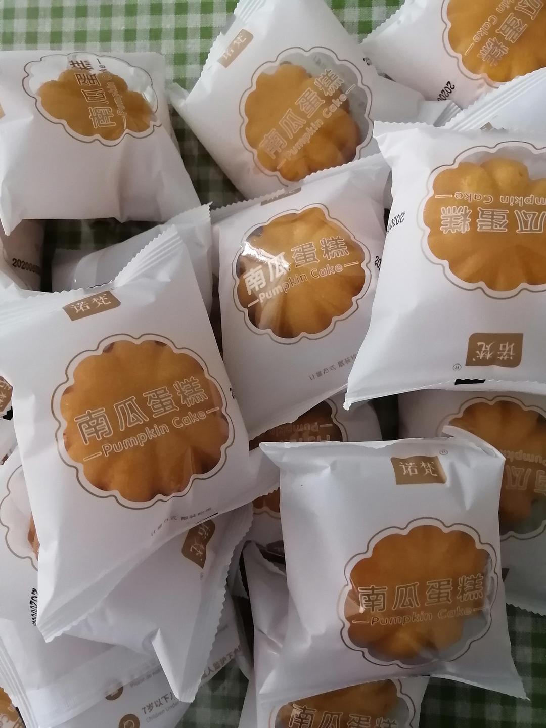 南瓜蛋糕包装妥妥的,外观喜人但有漏气的,口感有些发粘甜度适合小朋友。