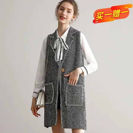 (恒源祥集团)FAZEYA小香风花毛尼中长款坎肩·灰色 拍一件得两件