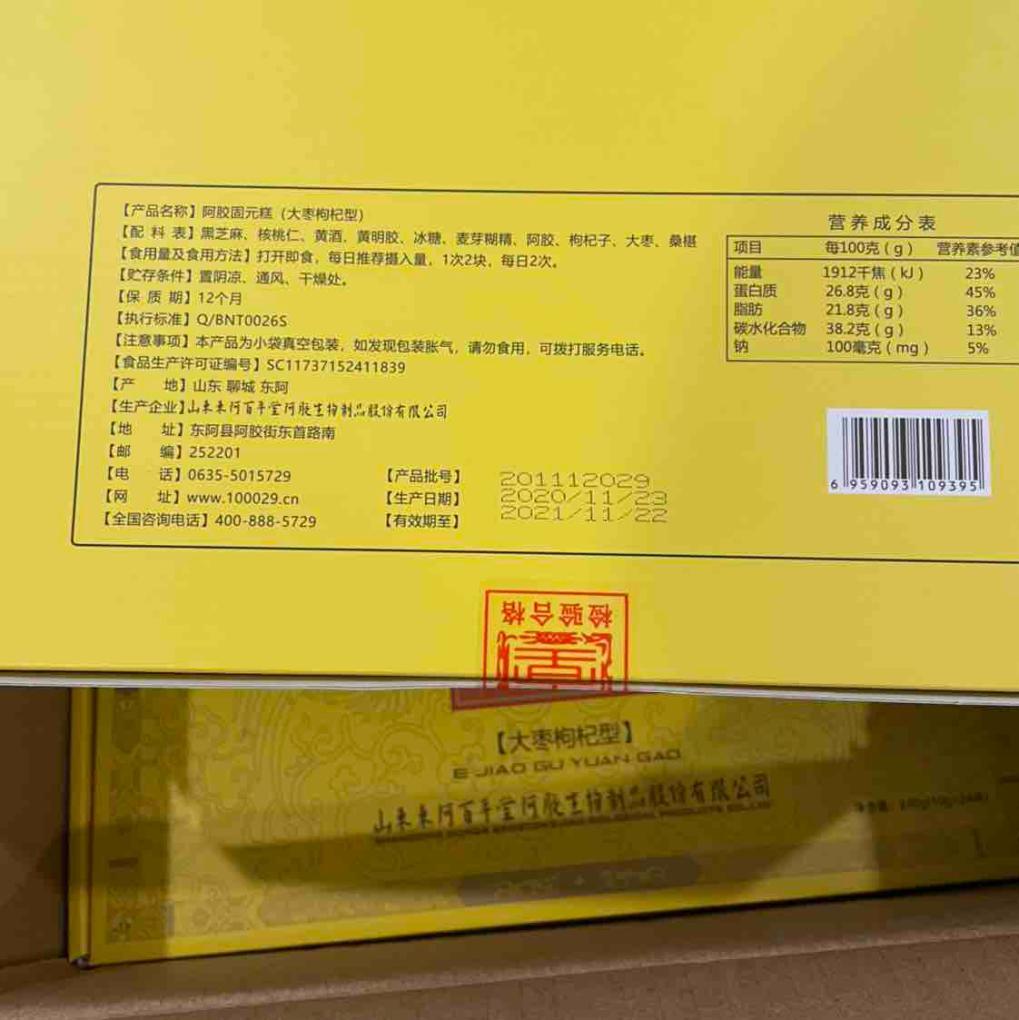 【买即赠20积分】百年堂阿胶固元糕240g×2盒·21年11月到期