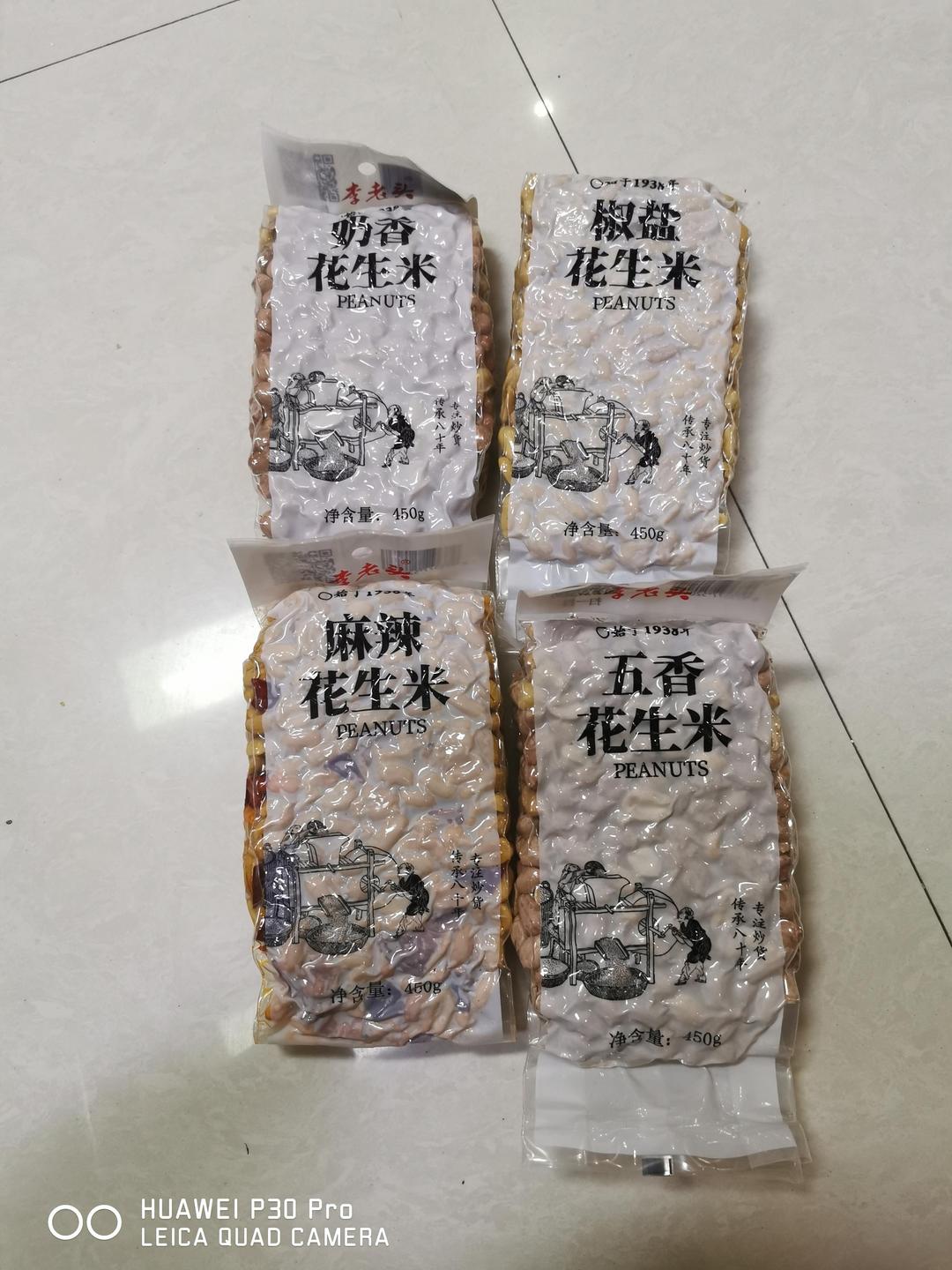 抱着试试看的心理,4种口味各要了一袋儿,先拆开一个五香花生米吃,放到嘴里很脆,味道也很好。不错,值得信赖。