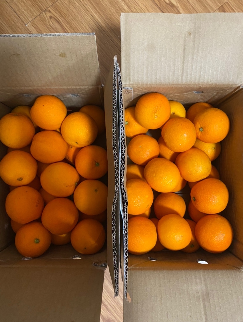 买了两箱冰糖橙都到了,非常好,虽然不是礼盒装但是自己家吃非常好了。特别甜,一家人一次得吃3-4个