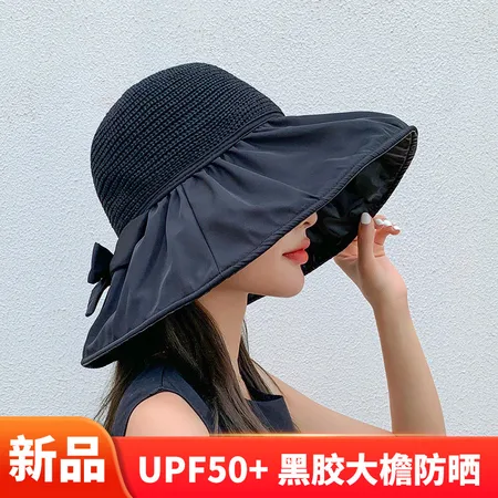 玉露浓 【可折叠/黑胶】防晒大檐太阳帽·黑色