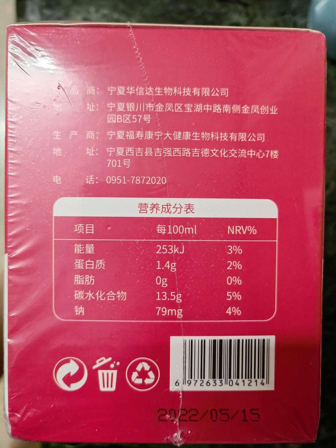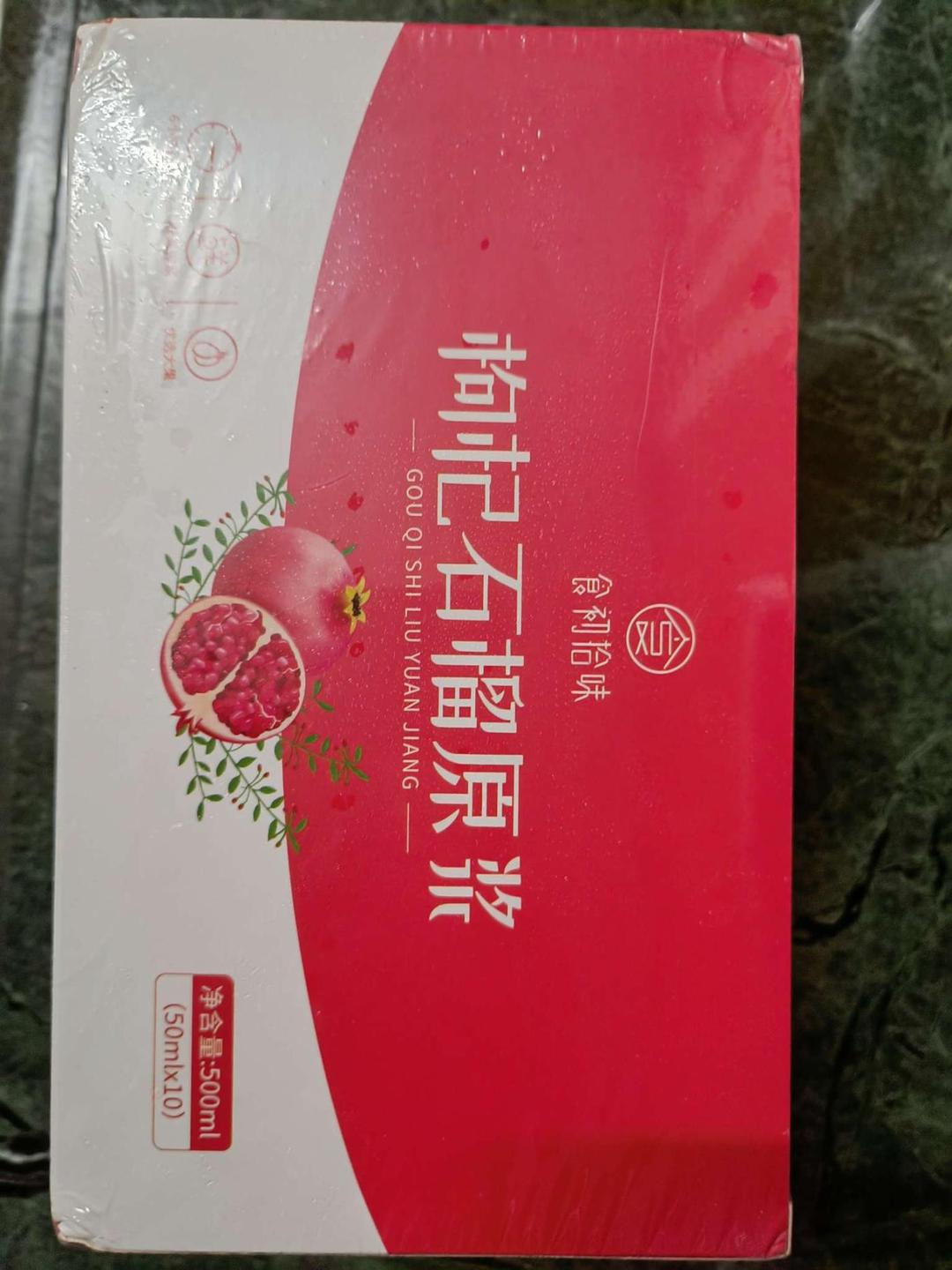 枸杞石榴原浆口感酸甜,家人都喜欢喝,只是价格稍贵哈,生产日期新鲜,希望店家优惠多多