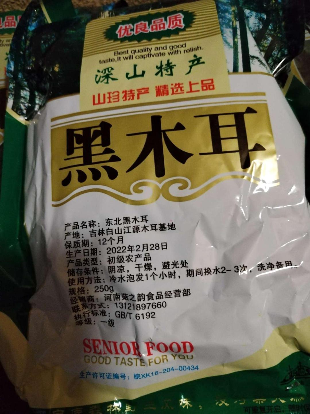 因疫情下单一个多月今天终于收到了!已多次购买这家东北椴木小碗耳,质量很好,还容易煮,很喜欢。这次生产日期新鲜,很满意,还会继续回购。