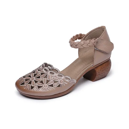 柔软头层牛皮,裸脚可穿好清凉!百搭时尚乳胶鞋垫超舒适,稳健粗跟加精美绣花,优雅美观更舒适!