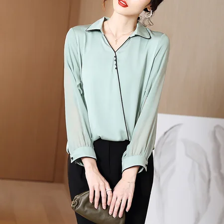 今升时尚百搭真丝衬衫·A1113D绿色
