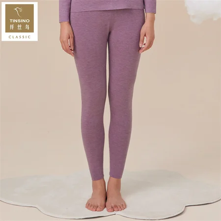 纤丝鸟羊绒蚕丝随形裁女士护膝单裤·麻紫色