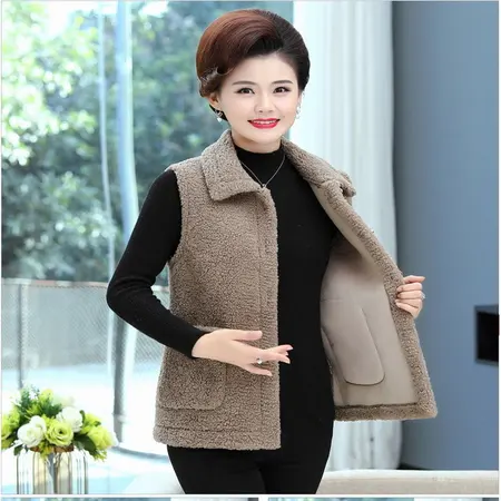 爆款2件组-2022新款时尚羊羔绒翻领马甲·浅咖色2件
