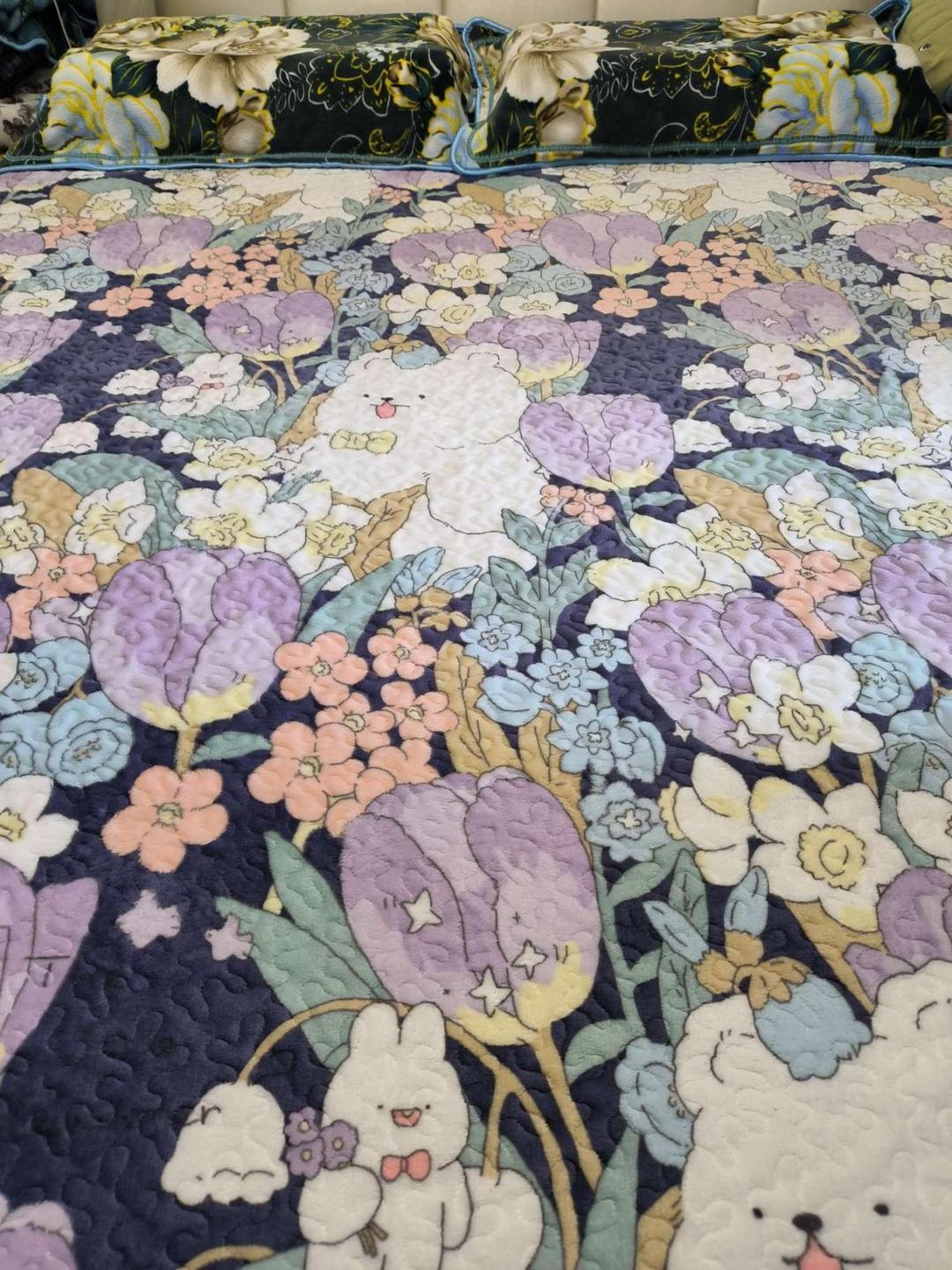 晚森家纺床盖收货快,价格低,柔软舒适,厚实保暖,花团锦簇十分亮眼,铺在石墨烯乳胶床垫上贴合不跑动。如果有枕巾配套就更完美了。好货好评!