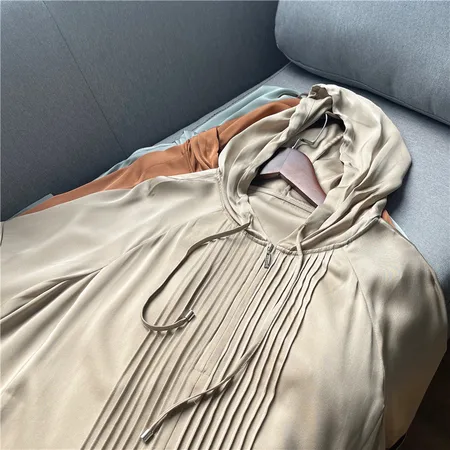 32姆米双乔缎弹力缎桑蚕丝帽衫,时尚百搭,上身非常减龄,细节满满,亲肤透气。值得推荐!