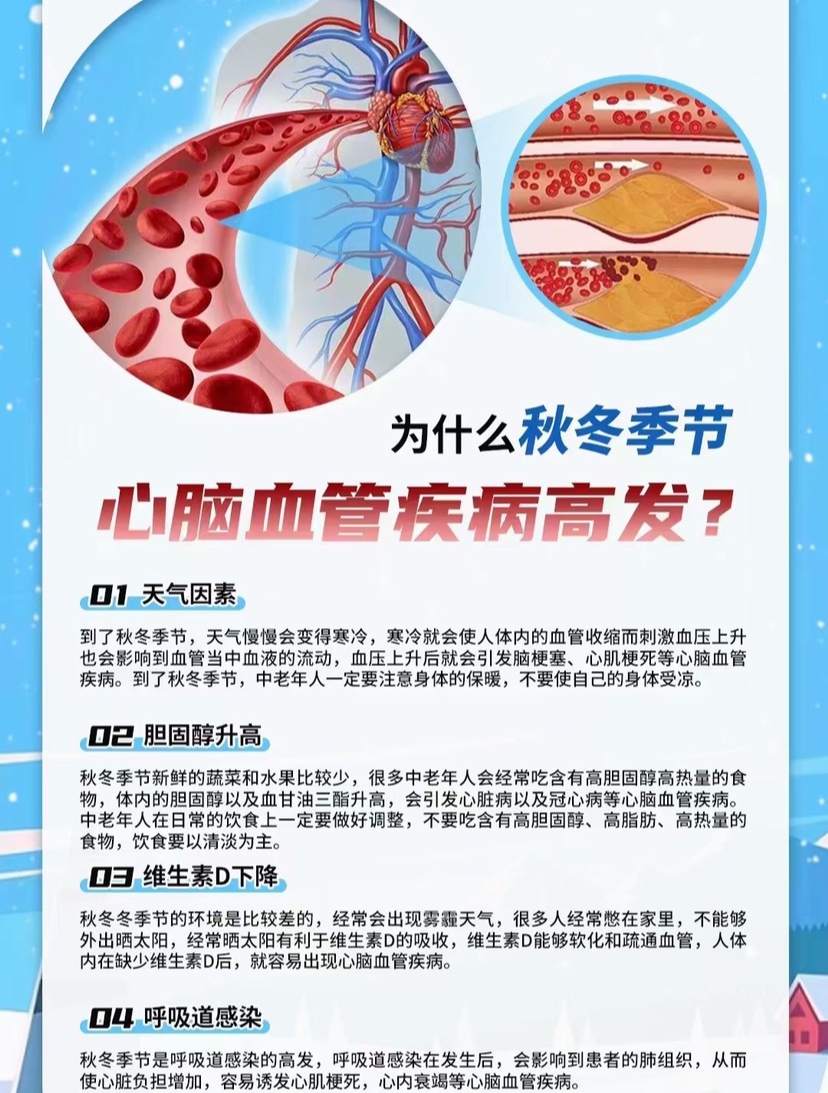 秋冬季节是心脑血管高发季,原因是什么?👇🏻 怎么解决?看图二