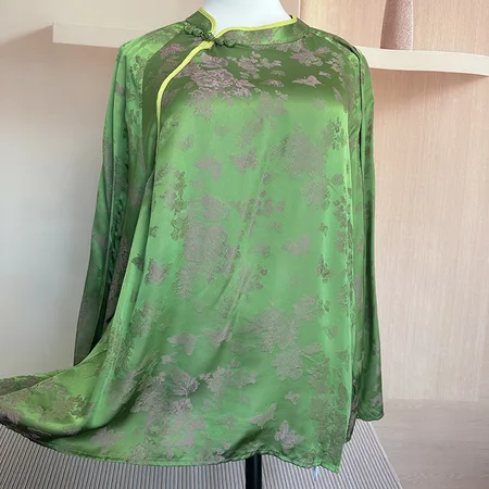 【25%蚕丝+75%人丝】织锦缎偏光美中式上衣
