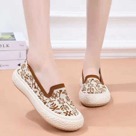 丽鸟儿飞织老北京布鞋休闲透气女鞋一脚蹬时尚运动鞋·OHSM-L26咖啡色单鞋