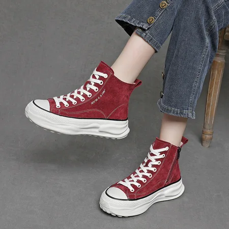 砾驾头层牛皮休闲鞋秋季爆款复古百搭轻便女鞋·YY-253-1红色