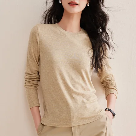 【天丝羊毛】修娴轻盈高级圆领T恤M888·燕麦色