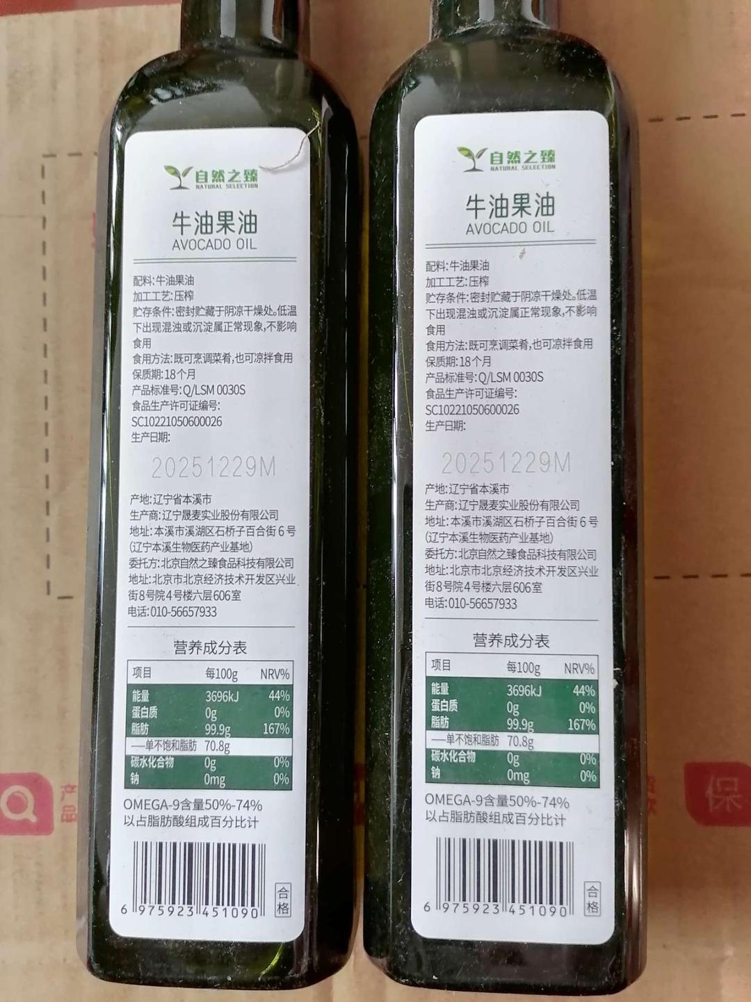 自然之臻的牛油果油尝鲜组合,油质清透,闻了一下没异味,炒菜也不错,塑料瓶的,自用可以