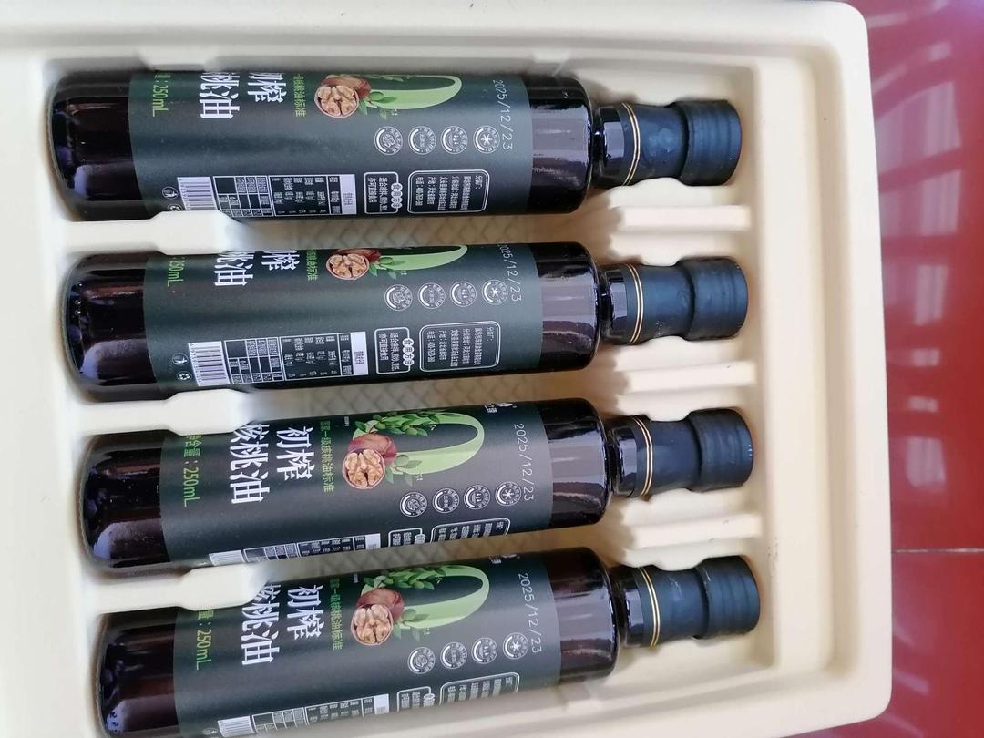 自然之臻的这款初榨核桃油尝鲜组合包装精致,漂亮,送人自用都拿的出手,玻璃瓶礼盒装,日期也好