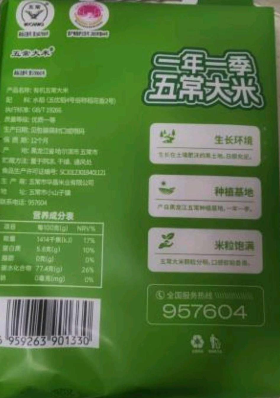 自然之臻五常有机稻花香2号大米