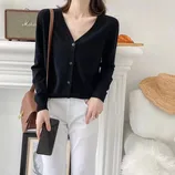 MUMU纯羊毛超细薄款P808v领开衫·黑色