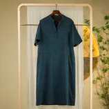 【疯狂季末清仓】香云纱冠乐绉连衣裙8223·蓝色