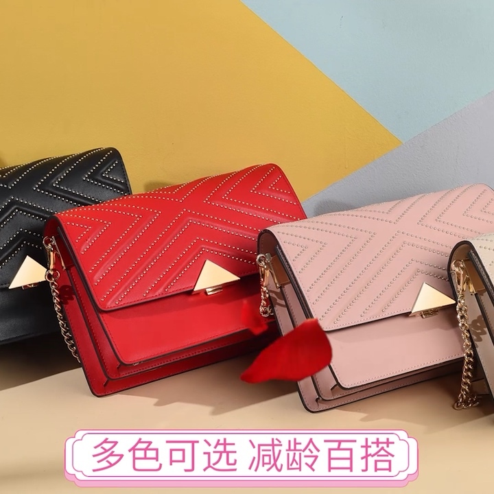 皮尔卡丹女包百搭ins小方包潮时尚百搭单肩包斜挎包·红色