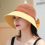 玉露浓 可折叠蝴蝶结镂空拼接太阳盆帽·黄色