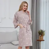 紫运蝶双层水洗纱布浴袍皇冠·紫灰